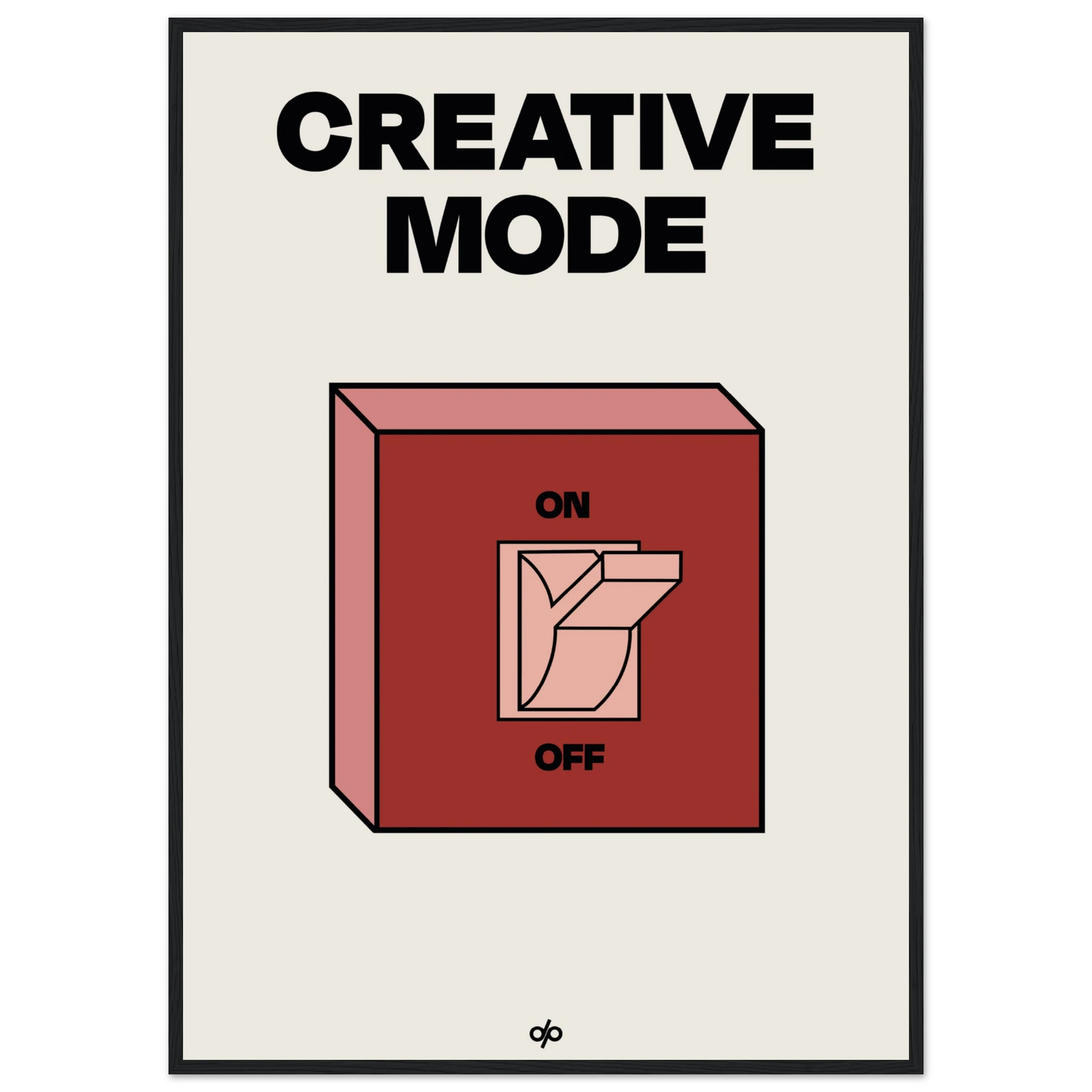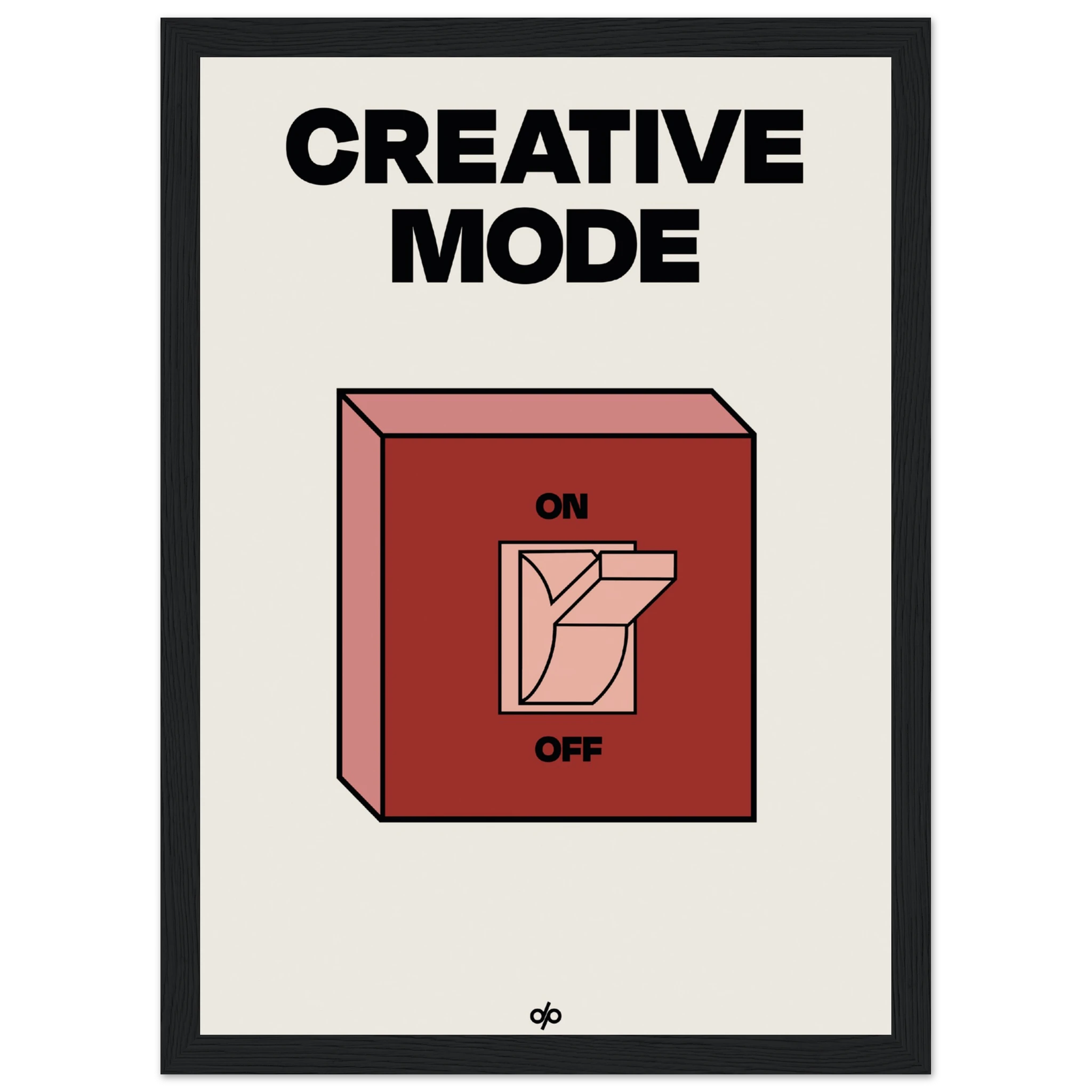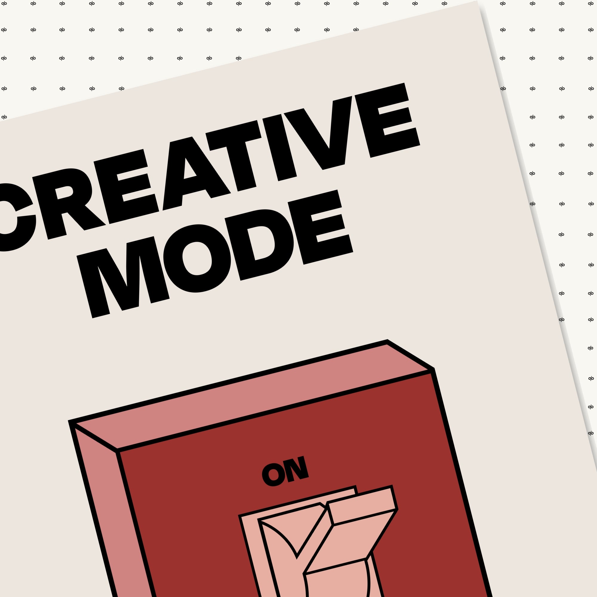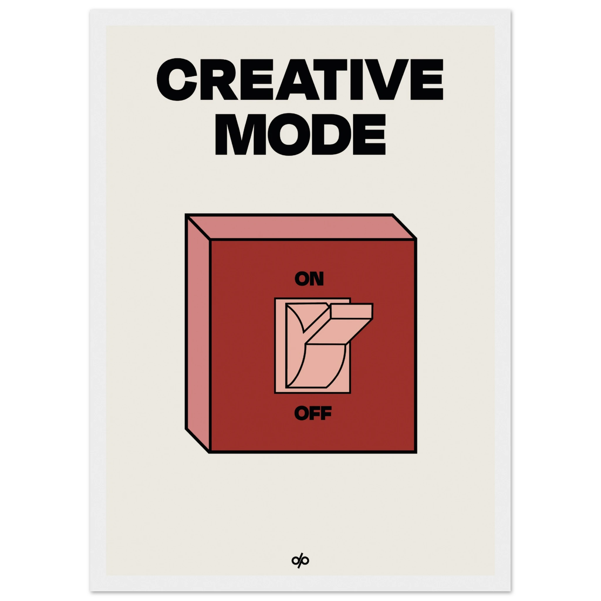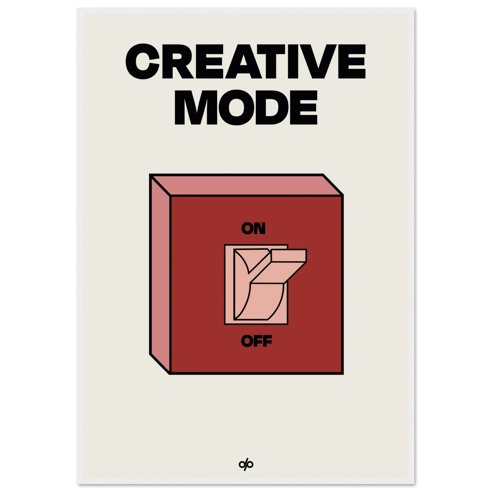 Creative Mode poster features a clean, bold illustration of a light switch labeled “ON/OFF,” playfully turned on under the words “Creative Mode.” It’s a visual cue that creativity is a mindset—one you can activate by choice. The minimalist layout makes it both stylish and instantly energizing in any workspace.