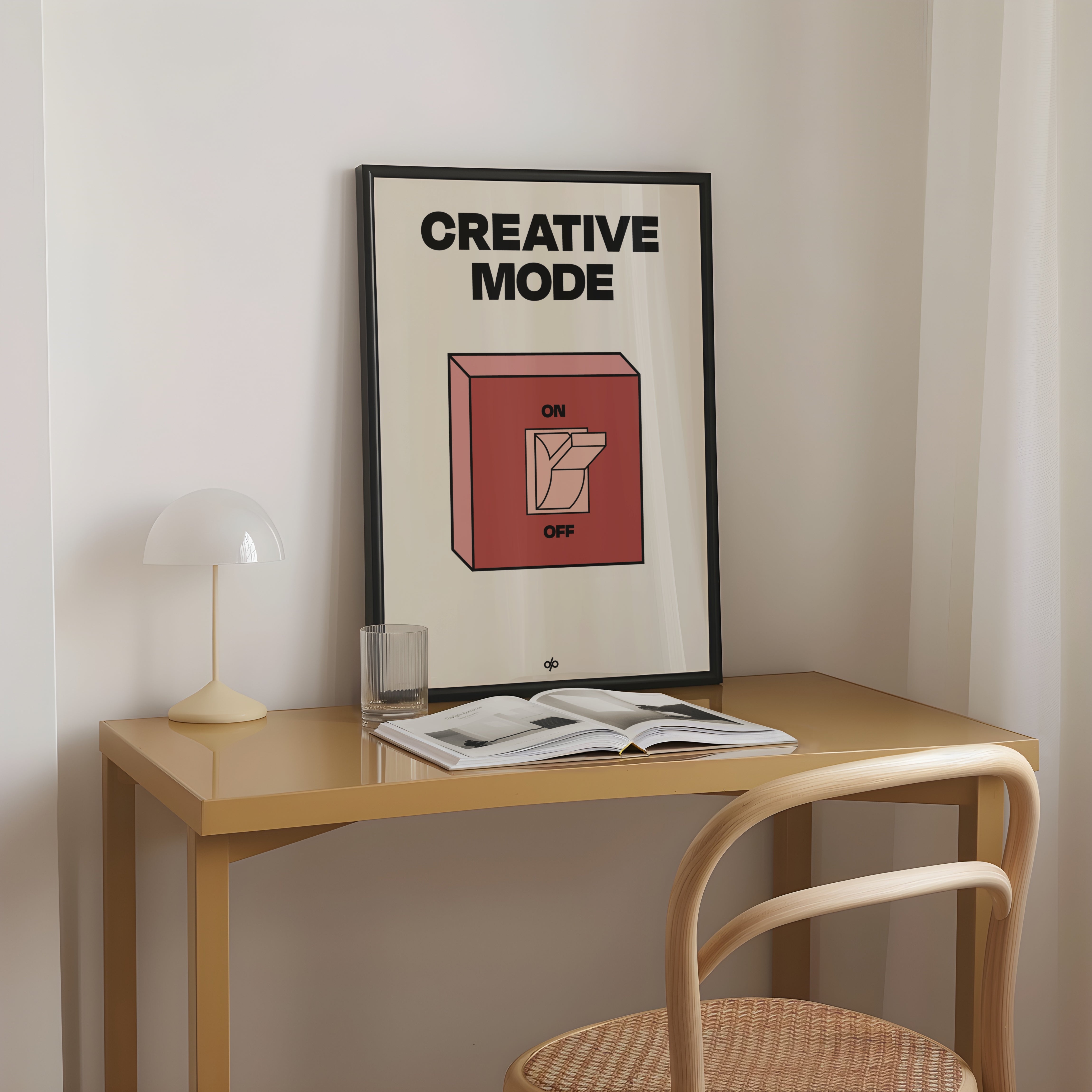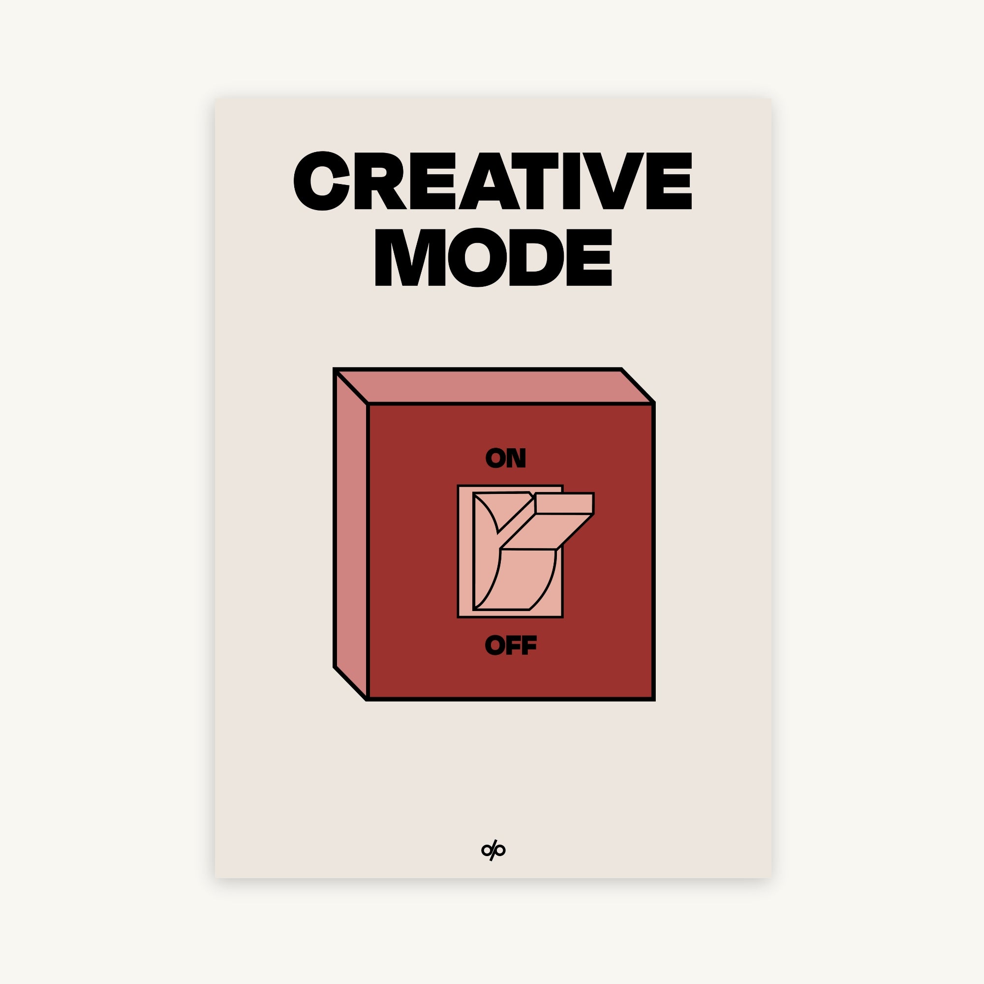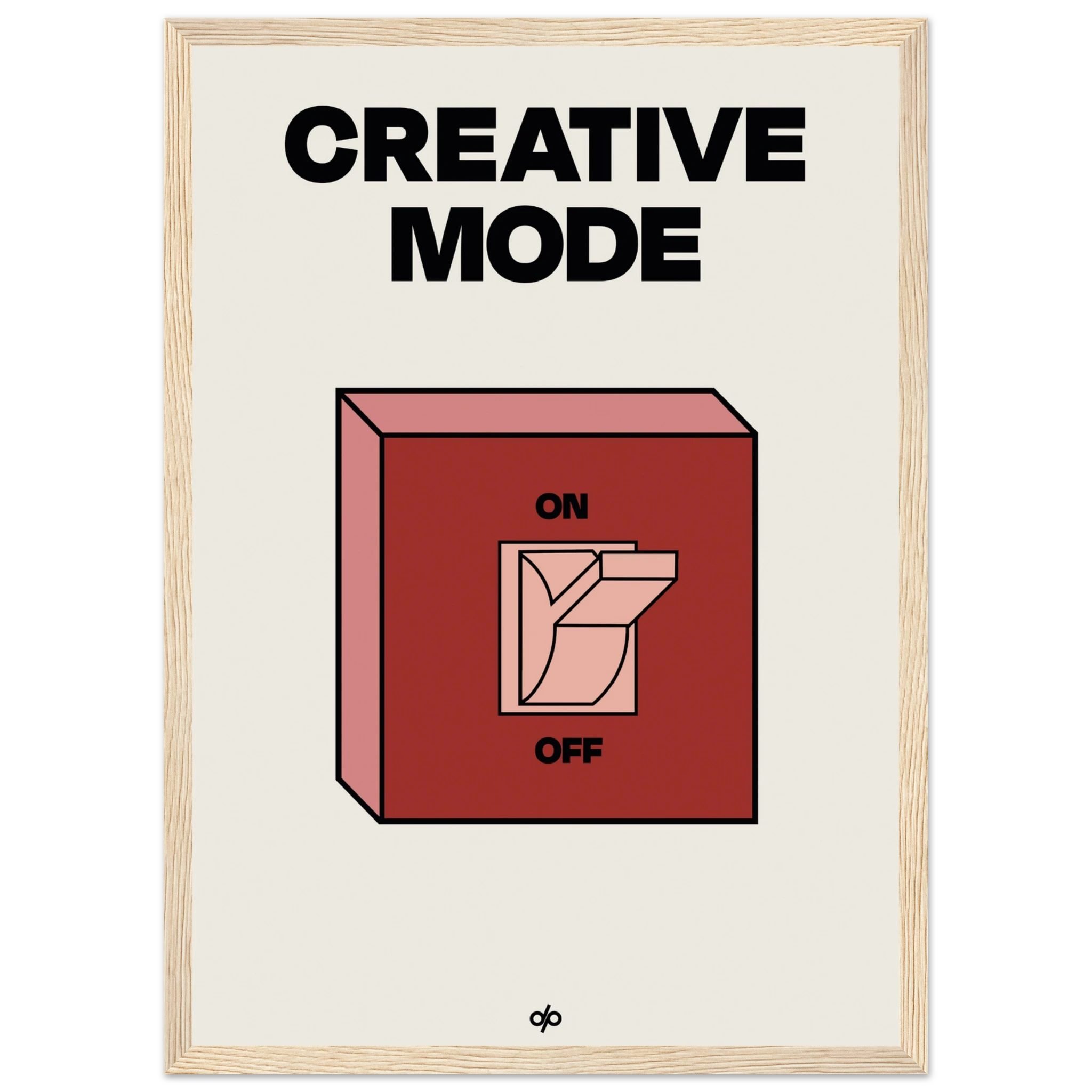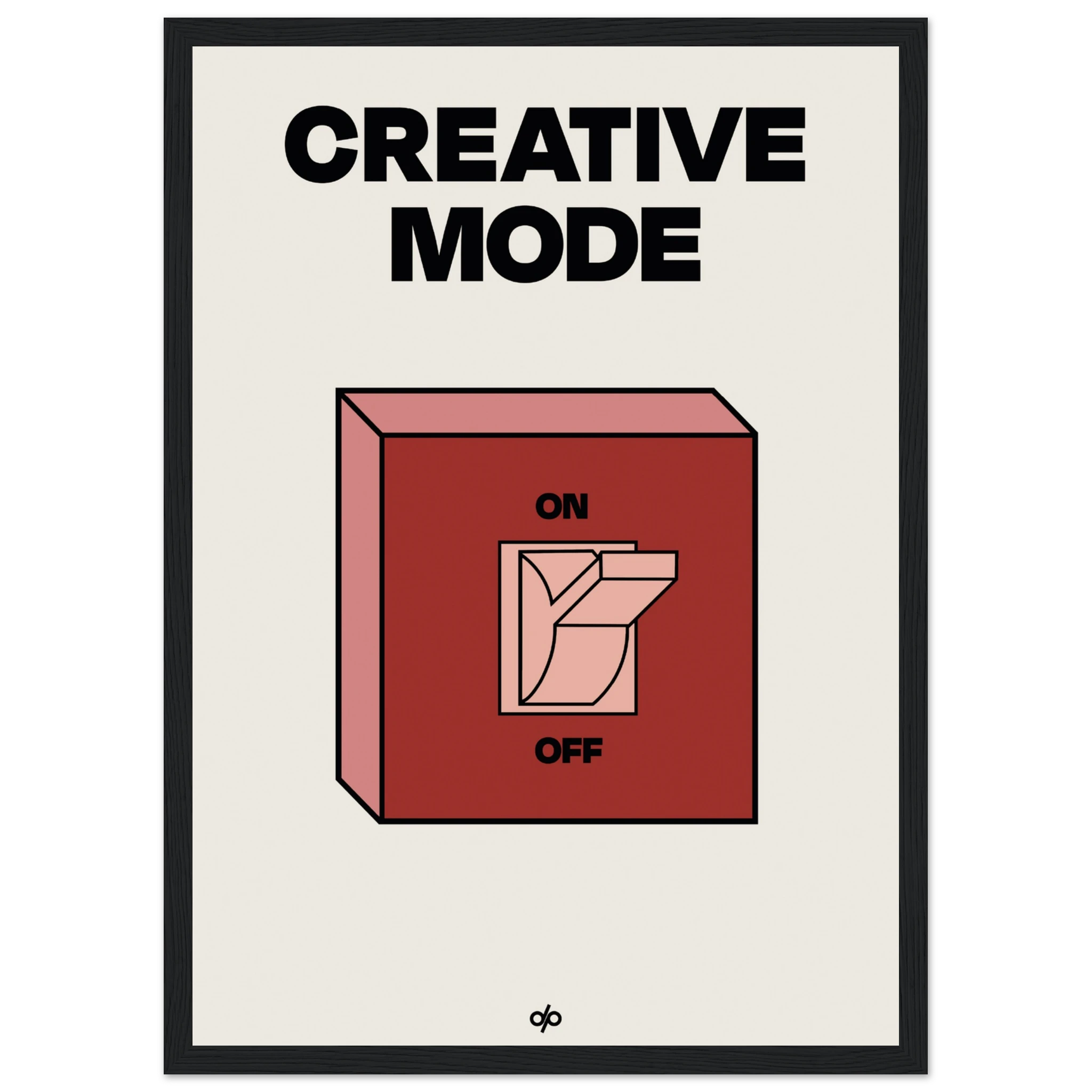 Creative Mode poster features a clean, bold illustration of a light switch labeled “ON/OFF,” playfully turned on under the words “Creative Mode.” It’s a visual cue that creativity is a mindset—one you can activate by choice. The minimalist layout makes it both stylish and instantly energizing in any workspace.