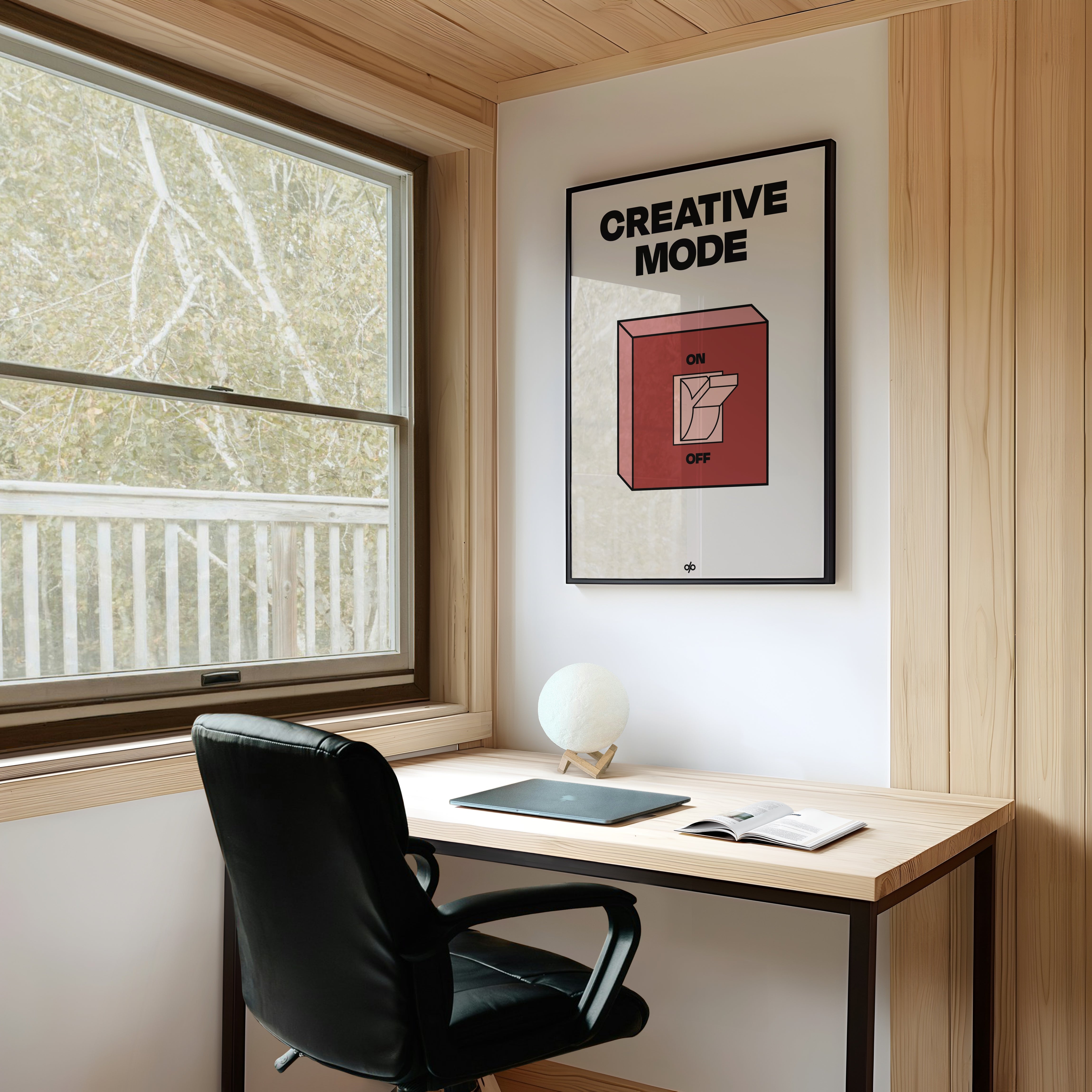 This design reminds us that creativity isn’t random—it’s a decision to engage. Whether you’re brainstorming, building, designing, or writing, this poster becomes a daily ritual in itself—a mental switch to flip before you get into flow. It’s a statement piece for anyone who takes ideas seriously.